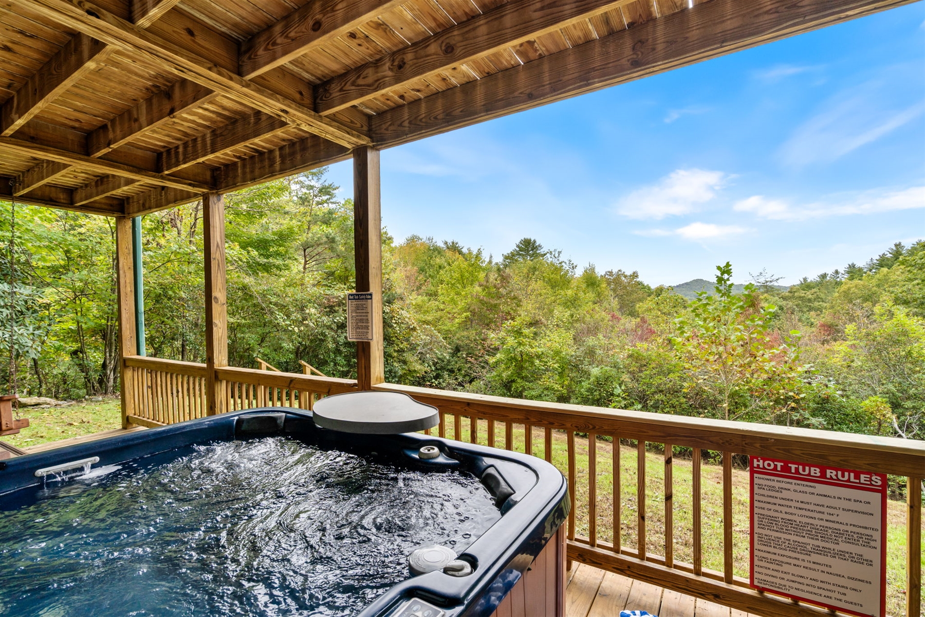 Spa & Social: A roomy, cleaned hot tub sits under shelter—perfect for sunrise soaks, starry-night dips, or post-hike unwinding. Plush spa-sized towels, a handy side table, and a basket of comforts make slipping into the warm jets a simple pleasure. The hot tub’s position at the railing gives you a bubbling front-row seat to whatever the sky’s serving: fog, sun, or an abundance of stars.