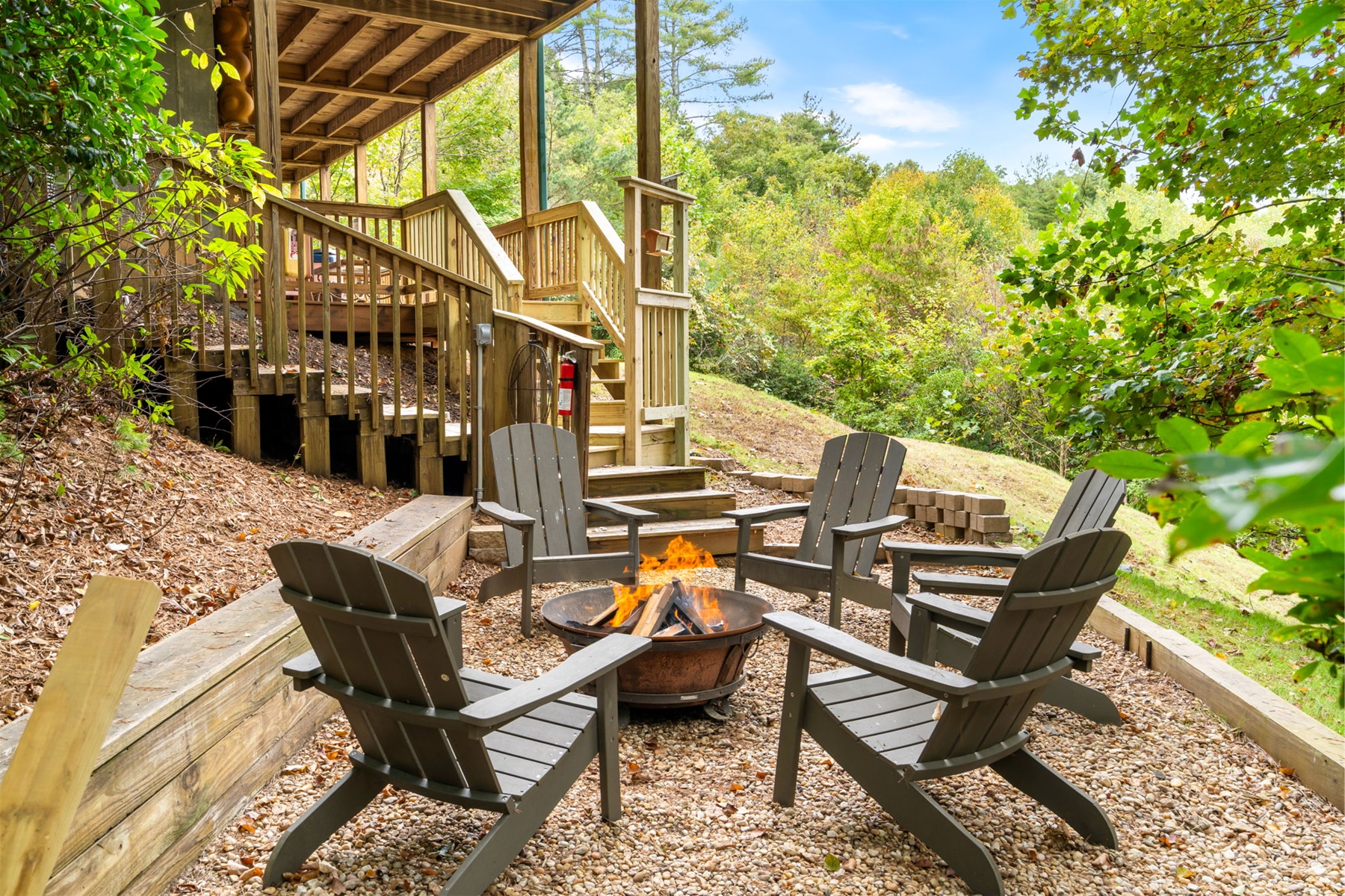 Skyline Porch: Step out from the great room onto a wide, fully covered deck that frames rolling treetops and distant ridgelines. The deep overhang and ceiling fan make mornings breezy and afternoons pleasantly shaded, while the lovers’ swing and woven gliders invite slow reading or cloud-watching.