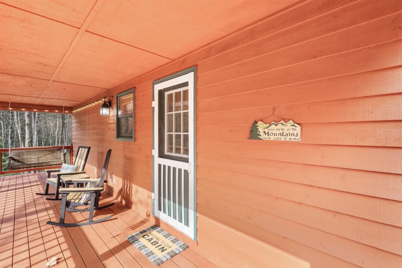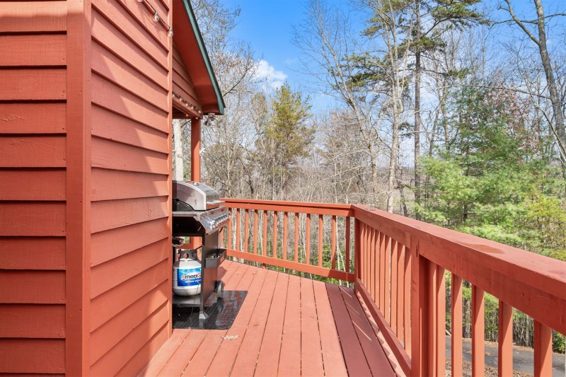 Mountain Woodlands & Seasonal Vistas: Step out to a broad, wrap-around covered haven overlooking a sprawling backyard with peaceful views, seating for everyone, and fresh cool mountain air whisking around you as morning and evening grazing deer that offer a moment of zen. Flame & Flavor: Fire up the brand new 6-burner gas grill for effortless mountain feasts. Between sizzling suppers, stretch out on weather-resistant rocking chairs and take in the mountain quiet and serene scenery. see Amenities for more.