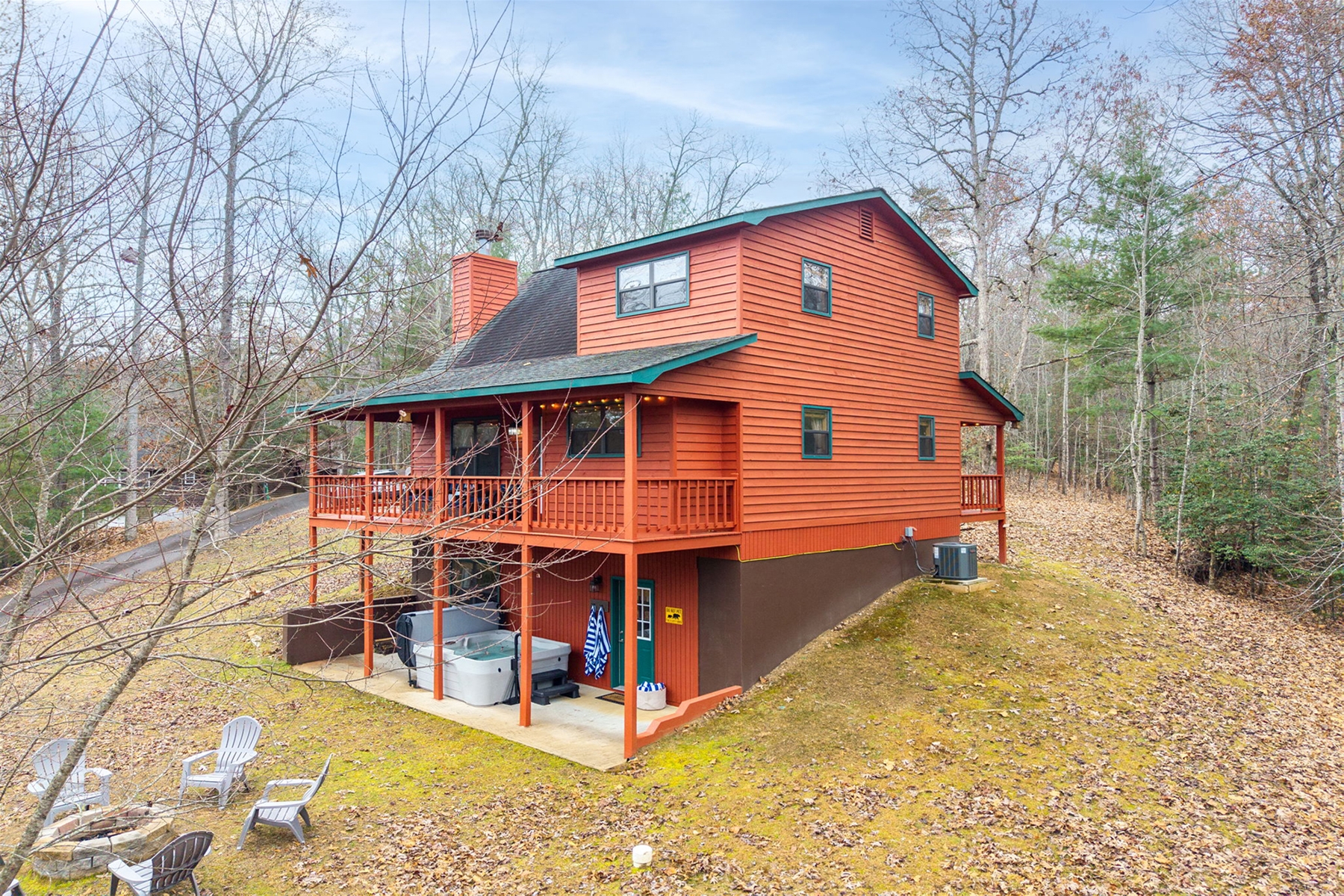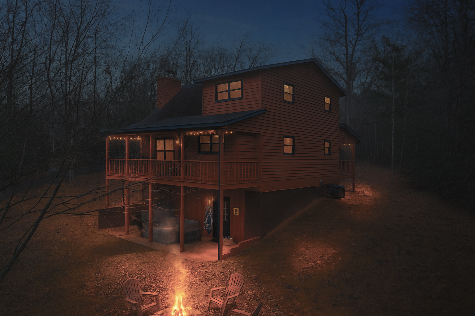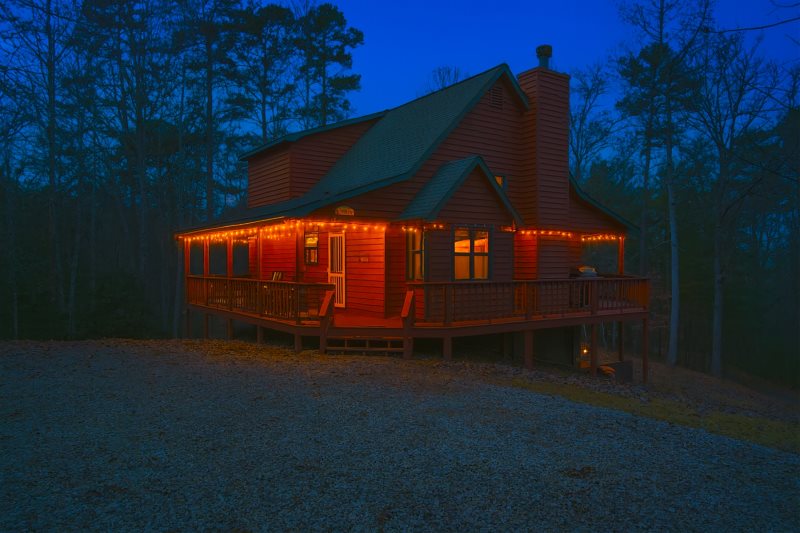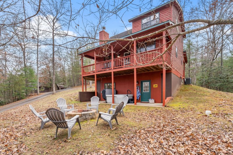 The stars arrive early-evening here during winter. Like a diamond studded tapestry, it blankets this peaceful mountain cabin, openly perched on hilly terrain, just minutes from Nottely Lake. The game room invites friendly rivals over foosball and arcades. Mornings begin on quiet sun-kissed decks against seasonal vista views. Afternoons drift by in a new soul soothing spa. Evenings end by the fire pit’s warm glow and calming comradery. Here, every day blends playful energy with a peaceful escape.